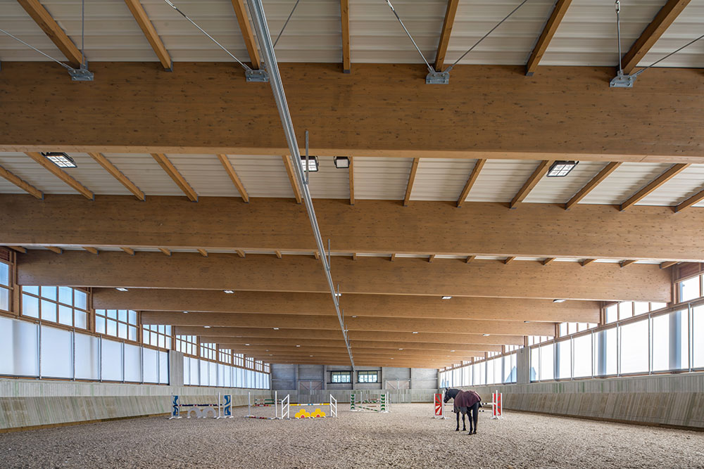 This hall is specially surfaced for horse sports, and is equipped with its own bathroom and club room