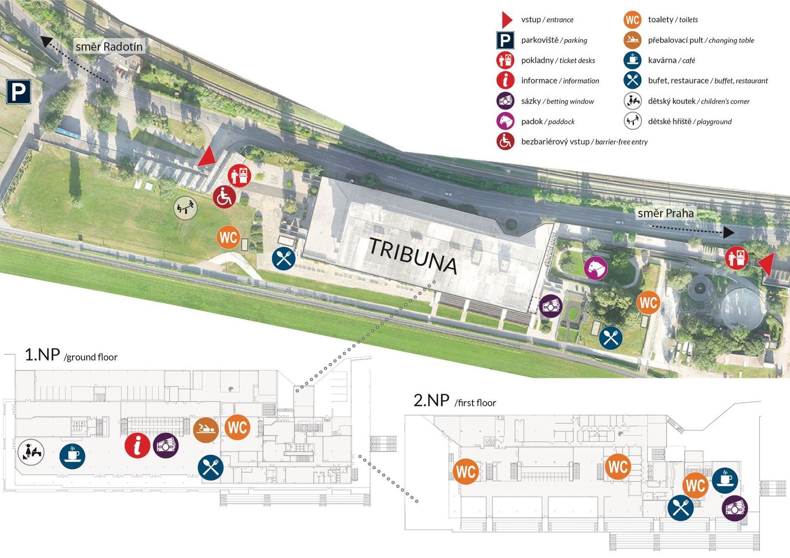 Free pony riding if weather is good, outdoor playground (trampolines, carousel, etc.), indoor children's corner (ground floor of the grandstand).